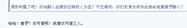玄海拾贝 教授 注册 2010-07-14 消息 3,523 反馈评分 2 点数 61 2014-08-14 #20 QUOTE(hyl168 @ 2014年08月14日 Thursday, 05:17 PM) 大师就是大师,可以看出某人的可爱之处!真tm的XX... [snapback]3686440[/snapback] 应该加上引号! 可以看出某人的“可爱”之处!