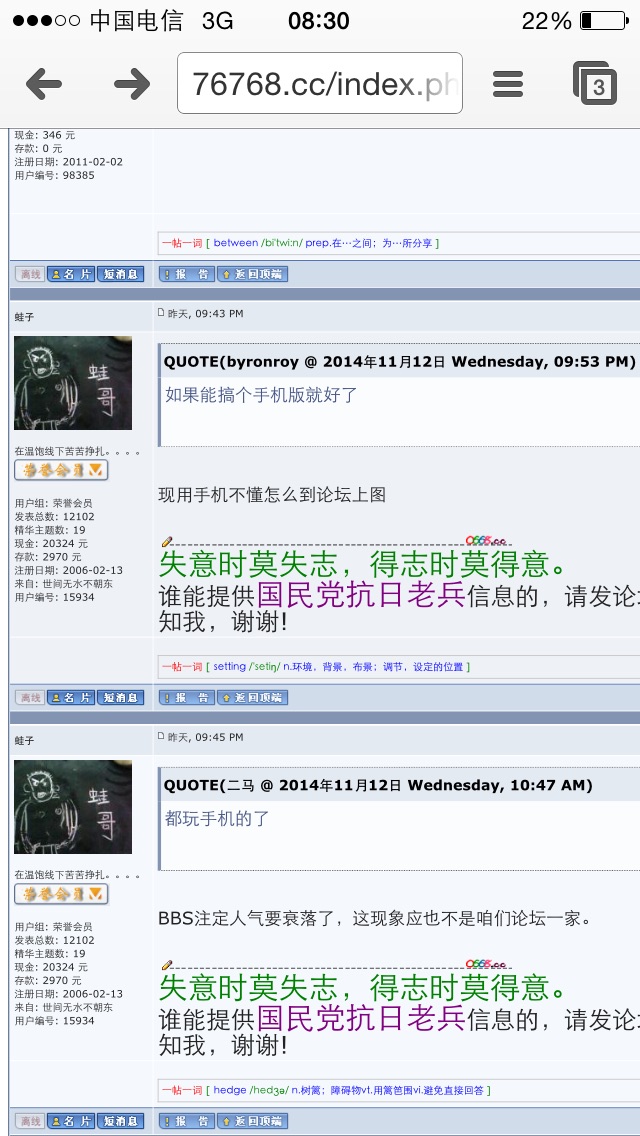 、手机浏览器可以上论坛,只是宽度问题。