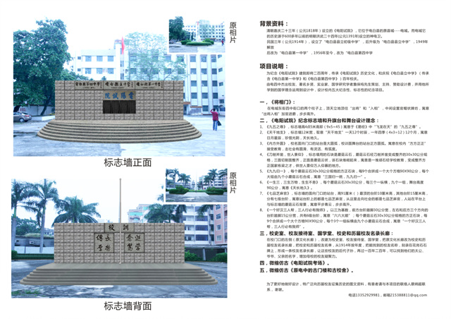 QUOTE(四中乐叔 @ 2014年11月13日 Thursday, 12:08 AM) 把“电阳试院”、“电白县县立中学”、“电白县第一中学”、“电白县第四中学”都客观表述 在电城的原“电阳试院”,现在的“电白县第四中学”中心广场的记忆标志墙。 [snapback]3715161[/snapback]