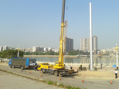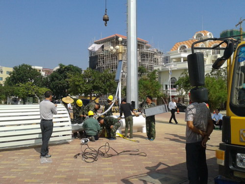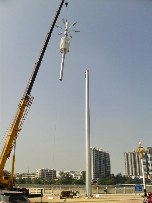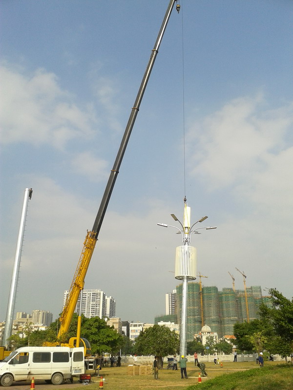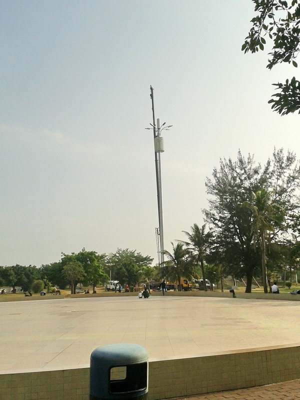 貌似还在调试整修,拟似五条钢柱已安装完毕:1革命烈士碑附近,2上排小学对面广场,3防护堤边,4洗太夫人像与舞池中间,5电白中学后面运动场附近,瓦也期待现场效果
