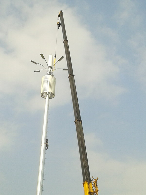 这个百分百是手机信号塔,是电信或移动手机信号发射信号用的.下面的灯只是伪装,因为现在很多老百姓都怕辐射,所以很多民房都不给装了.这是电信或移动主动找政府出钱建的.一般的路灯不会建这么高.