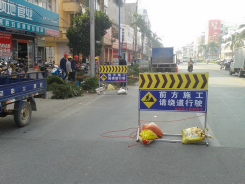 现在在三角墟短途车站 上来一点的南国山庄、大全宾馆门口一带进行铲除花带的施工,这应该是为了扩宽车道,缓解人民路车流压力。。。