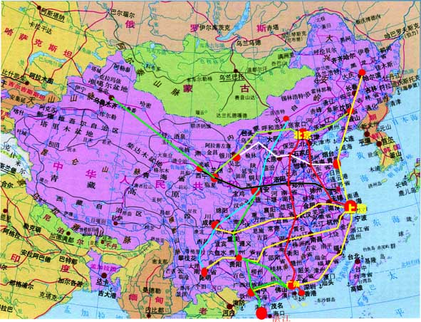 三、依据历史上经济发展走交通头、交点、尾的策略,肯定是上海、广州首选。南宁、贵阳、西安为交点,昆明、成都旅游资源丰富要是结束点,这些地方应该是发展的重点。