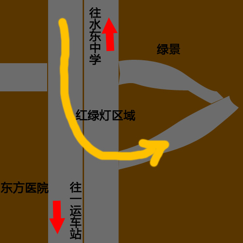 1、绿灯亮时,对面车也是绿灯,那他们就会往水东中学方向行驶,我根本无法左转弯