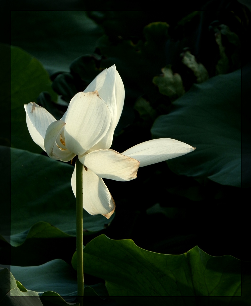 唯一的一朵绽放着的。。。即也不是尽美,所谓的“出於泥而不染”,在它身上却不完全洁净。 奢望下次再光临时,有更多“完美”的绽放着的选择。 ---注:其实这枝盛开着的花朵,当时看见她时(离我站的地方大约有6至7米远),非常惊艳:西斜的光辉 反映在它身上,片片透光的花瓣犹如轻丝薄衣,迎风飘摇。。。只是自己并没有拍出当时的感觉,很是烦悔。 [attachmentid=341095] [attachmentid=341096]