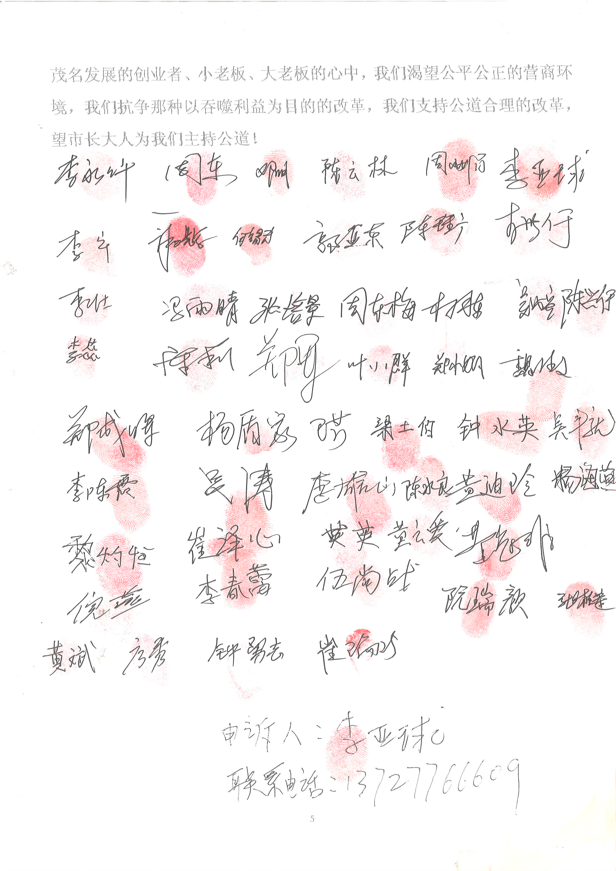 最后,我恳求市区各级领导关注一个本地经营者的正当利益诉求,茂名的发展环境既来自于包茂高速这样的大手笔民心工程,也来自于每一个扎根茂名发展的创业者、小老板、大老板的心中,我们渴望公平公正的营商环境,我们抗争那种以吞噬利益为目的的改革,我们支持公道合理的改革,望市区各级领导为我们主持公道!