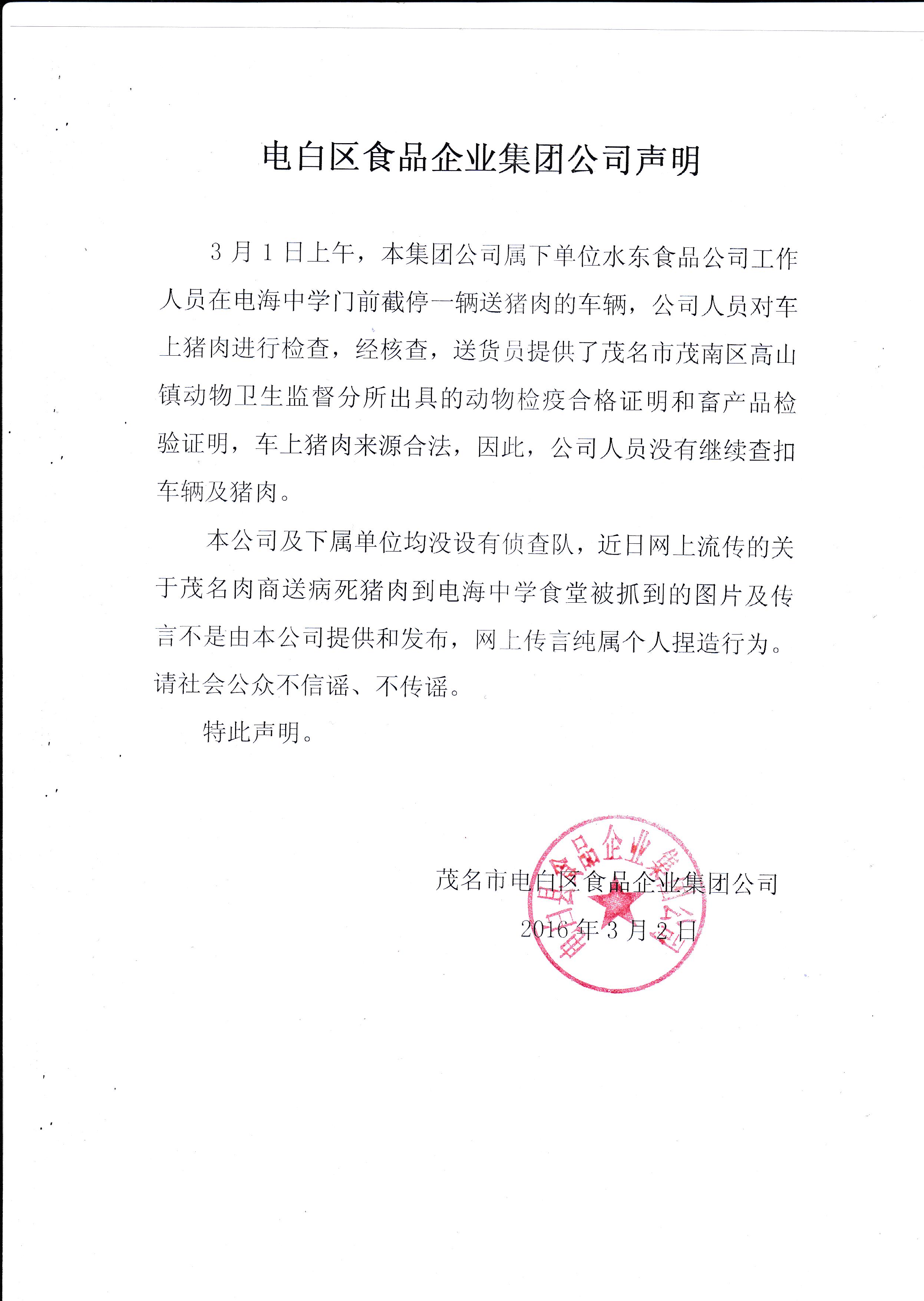 我想请问电海中学你扯什么蛋?你们的良心哪里去了?如果是你的孩子在学校读书你会给他们吃这些肉吗?整个事情如果是造谣你怎么不追究食品公司造谣的责任?有关部门这个时候又哪里去了?可怜的学生!沉默的羔羊!