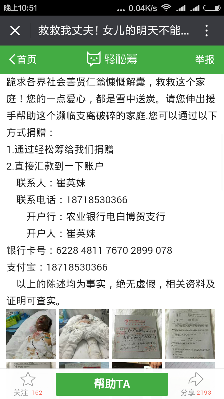 跪求各界社会善贤仁翁慷慨解囊,救救这个家庭!您的一点爱心,都是雪中送炭。请您伸出援手帮助这个濒临支离破碎的家庭.您可以通过以下方式捐赠: