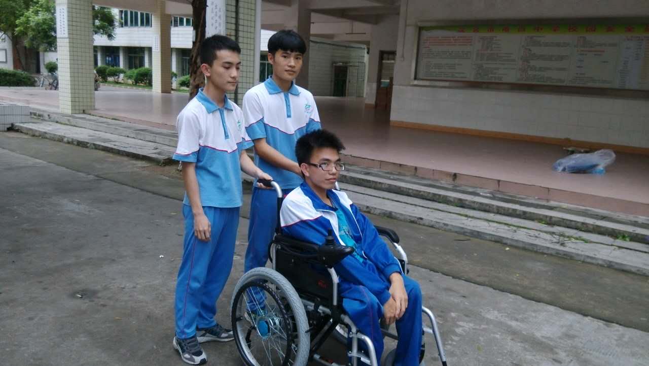 我校高一的学生,经过多少苦难辛酸不庸多说!真正生活的强者,令人䁔心的是,同学们看见其不便时都自然而然的搭把手!满满的正能量!