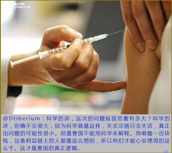 至于什么打了问题疫苗没事的科普文章,你爱信就信吧。转段话。@李正曦Sissi :既然监管部门是废物,谁敢肯定地说那些无效疫苗中不会掺杂假疫苗和毒疫苗?严禁出售的医疗卫生用品不是也都出售加工成我们生活中最常用常见的东西了吗。。。再次强调:不要用所谓的国际标准、理论说明来理解和诠释中国犯罪现象。