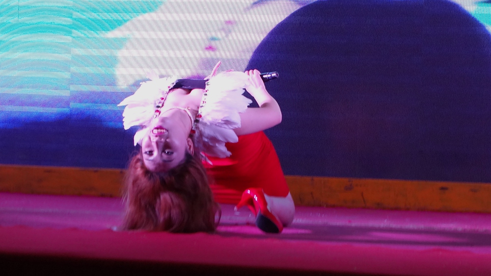 尽管人长得不怎么好看,歌曲也唱得极一般,但肢体语言上的表演还是足够卖力的。
