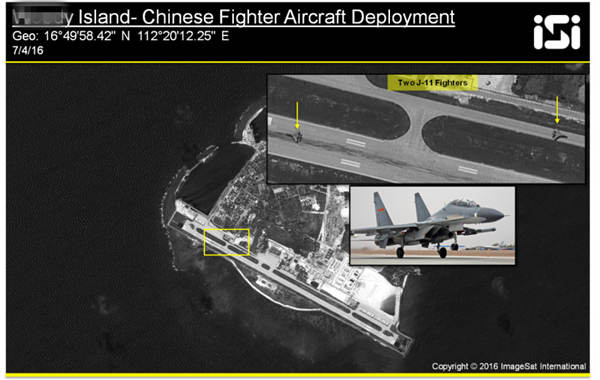 据报道,国际高清地球图像提供商“以色列图像卫星国际公司”在4月7日拍摄的、并由美国国防部官员4月12日确认的卫星图像显示,两架中国歼-11战斗机已降落在永兴岛。这种被五角大楼称为“侧卫”的战机于1998年首次服役,是俄罗斯苏-27战机的改良版,可与美国F-15“鹰”式战斗机或者美国海军F/A-18“大黄蜂”相提并论。