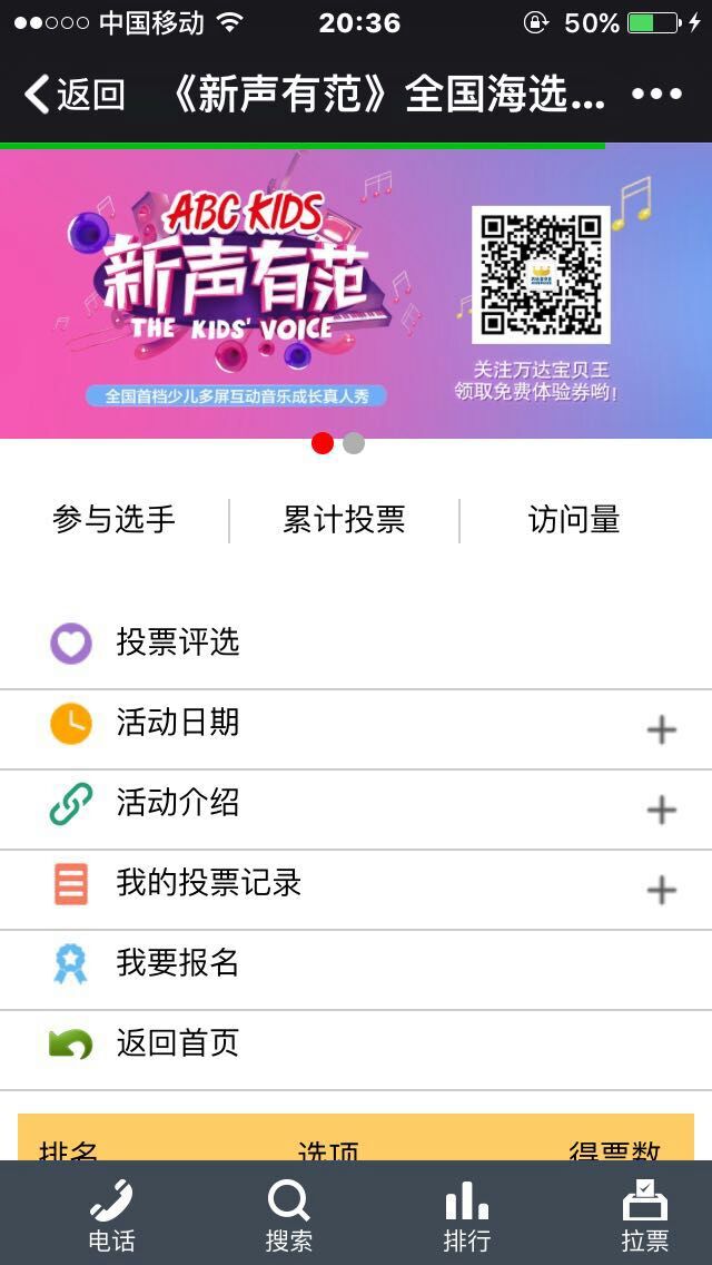 现在要进行人气投票了,决出全国人气前3的可直通电视节目录制!