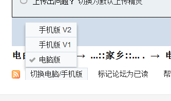 1、手机浏览:一般情况下,用手机浏览论坛,默认是手机版V1风格,如要切换电脑版,点最下方的电脑版即可。如要切换到手机版V2,在电脑版的风格下,点左下角的切换电脑/手机版,选中手机版V2即可。手机版V1与V2的主要区别:V1发帖是纯文字,V2可以发表图片等附件。