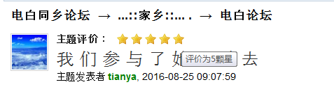 评分后,该会员声望分数在头像下方显示(如图),此分数将做为升级荣誉会员的评定参考。