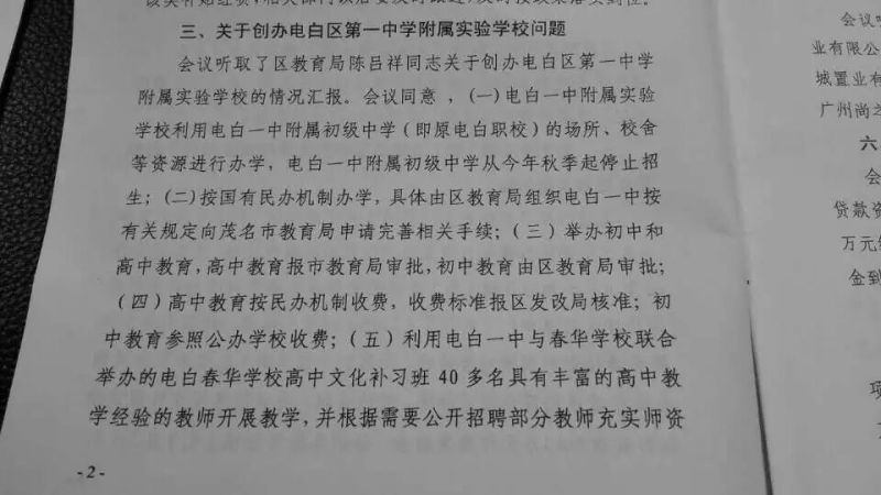 电白教育,办初中为了钱,还有人(学生)在电白读,快捞钱吧!但违法办学;办高中不为钱,免费招好学生也无人在电白读,更不用说择校电白了。电白区教育局,应撤销,由区政府或市教局直管。