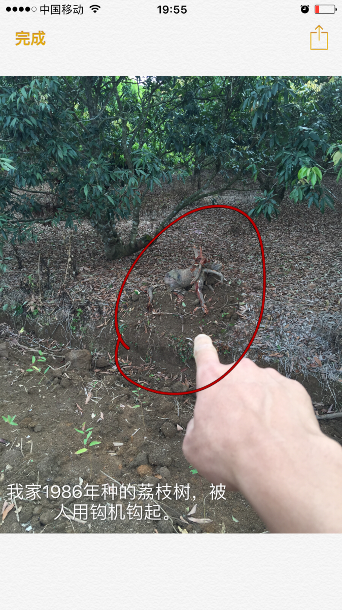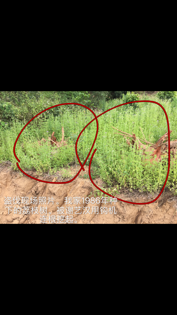 现在我谢广彬对这个,以评估损失过小,而无法处理这个结果,非常不满。原因有三个,第一、我报案了,为什么警察不保护好案发现场,还继续让谢艺汉种树。第二、确认地是我观珠管区的了,为什么不叫五一管区的他,迁移他种的快速林树苗。我家在那里种树,是花了不少血汗钱的。第三,请领导重新鉴定我树木损失。三十年树龄的荔枝树,虽然被他连根挖起。但总有痕迹的吧。考古队不是几千年前的东西,都可以还原真相吗?