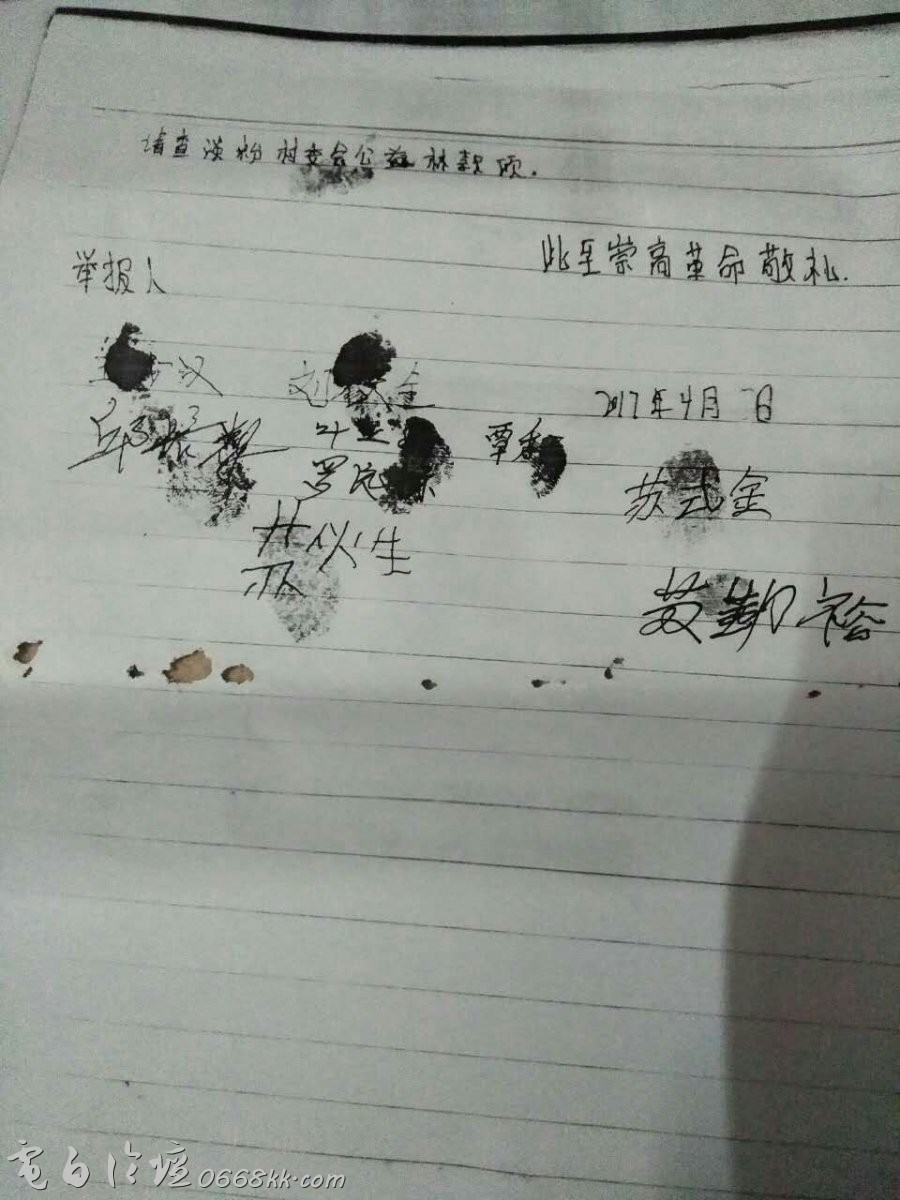 以上举报人均为当地被压迫的农民代表,老实的农民,望有关上级为民做主,早日把这些危害老百姓的社会蛀虫绳之以法吧!