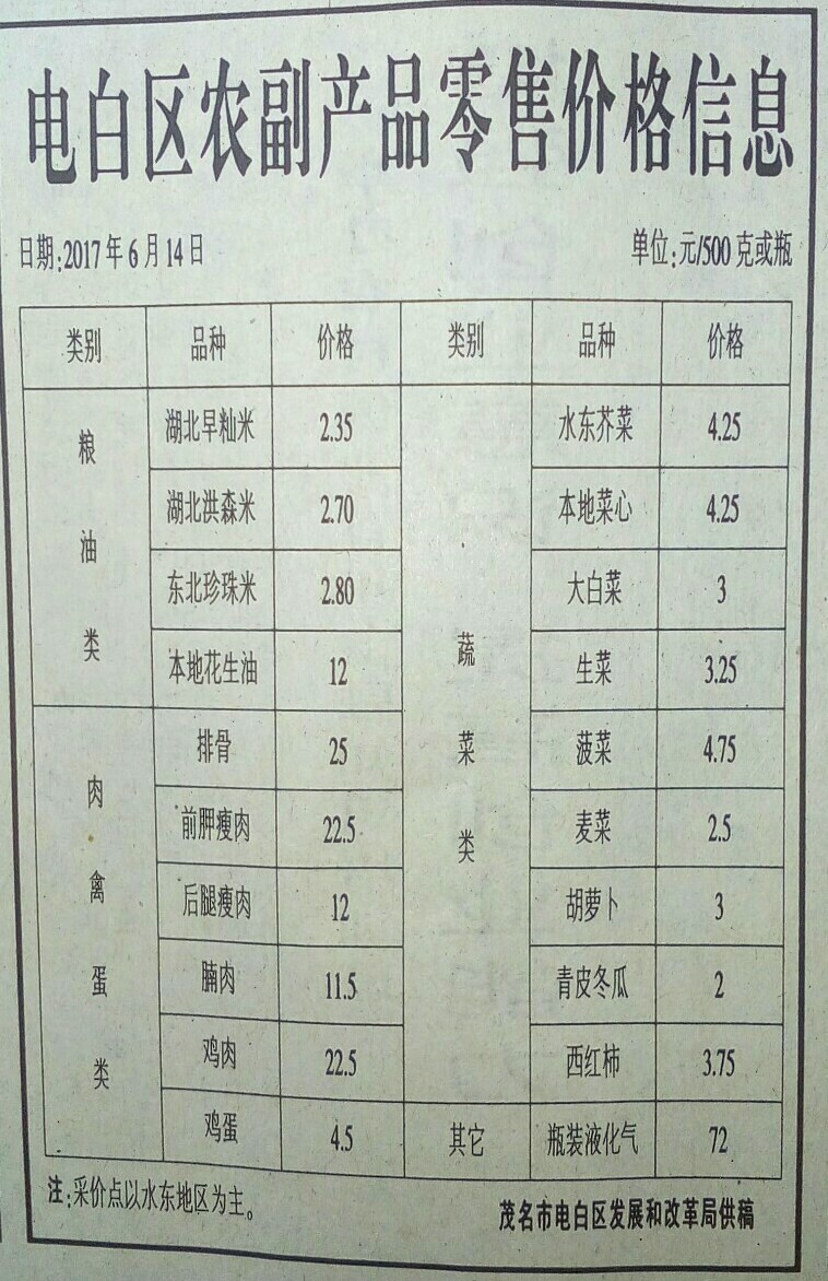 无意中看了份报纸"电白区农副产品零售价格售息"