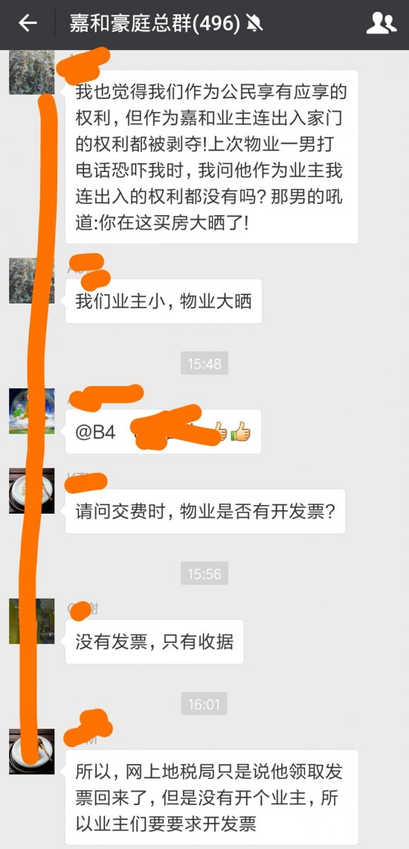 这是嘉和豪庭微信群里业主最新的聊天记录。