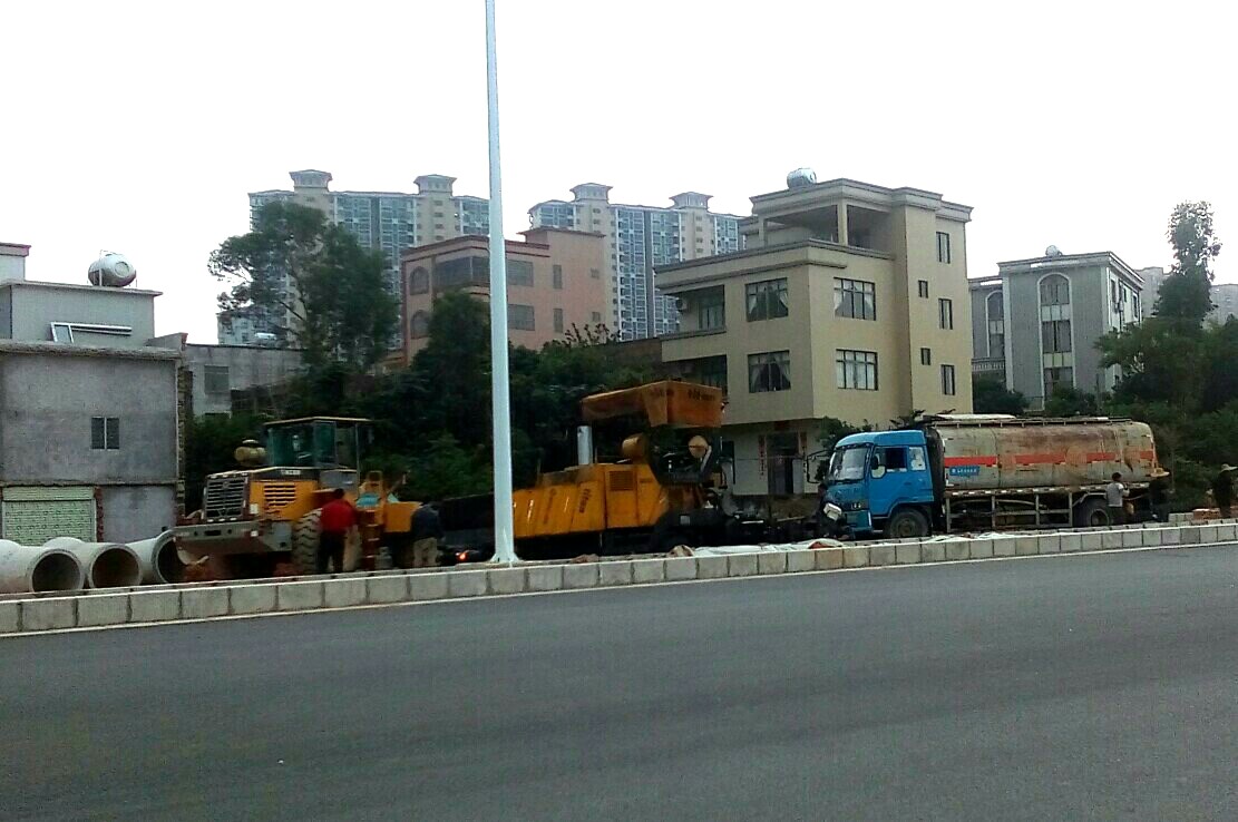 其实前几天就途见有铺设沥青工程车进驻,撞正隔离万年城、万达广场庆典~