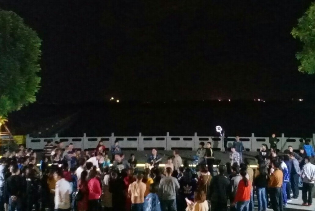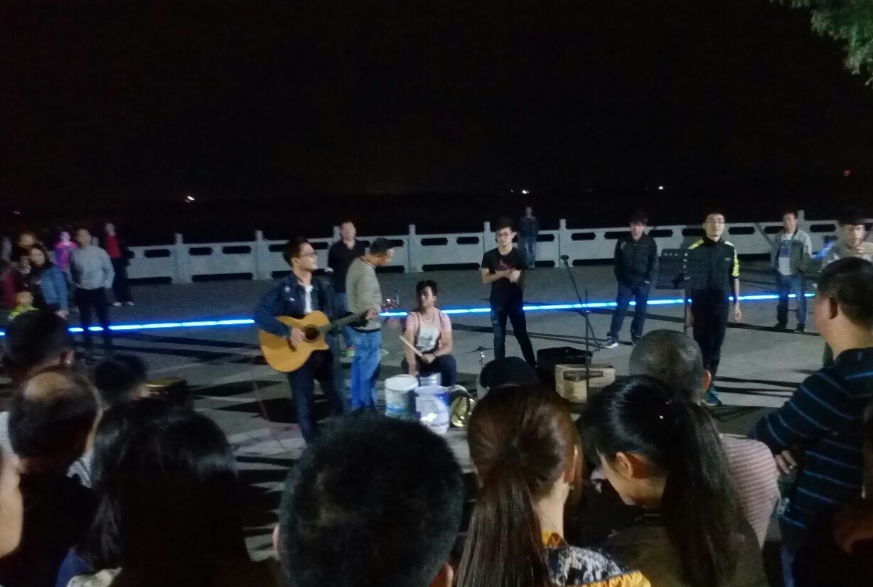 今晚大约8点零钟途经亲水平台,发现好多人,近观,原是大几个貌听是在茂名某酒巴的音乐爱好者过来水东海堤这亲水平台献下唱与互动下~有大批徒步群众围听,歌者与配乐者唱配合挺好,歌煮唱得挺好~