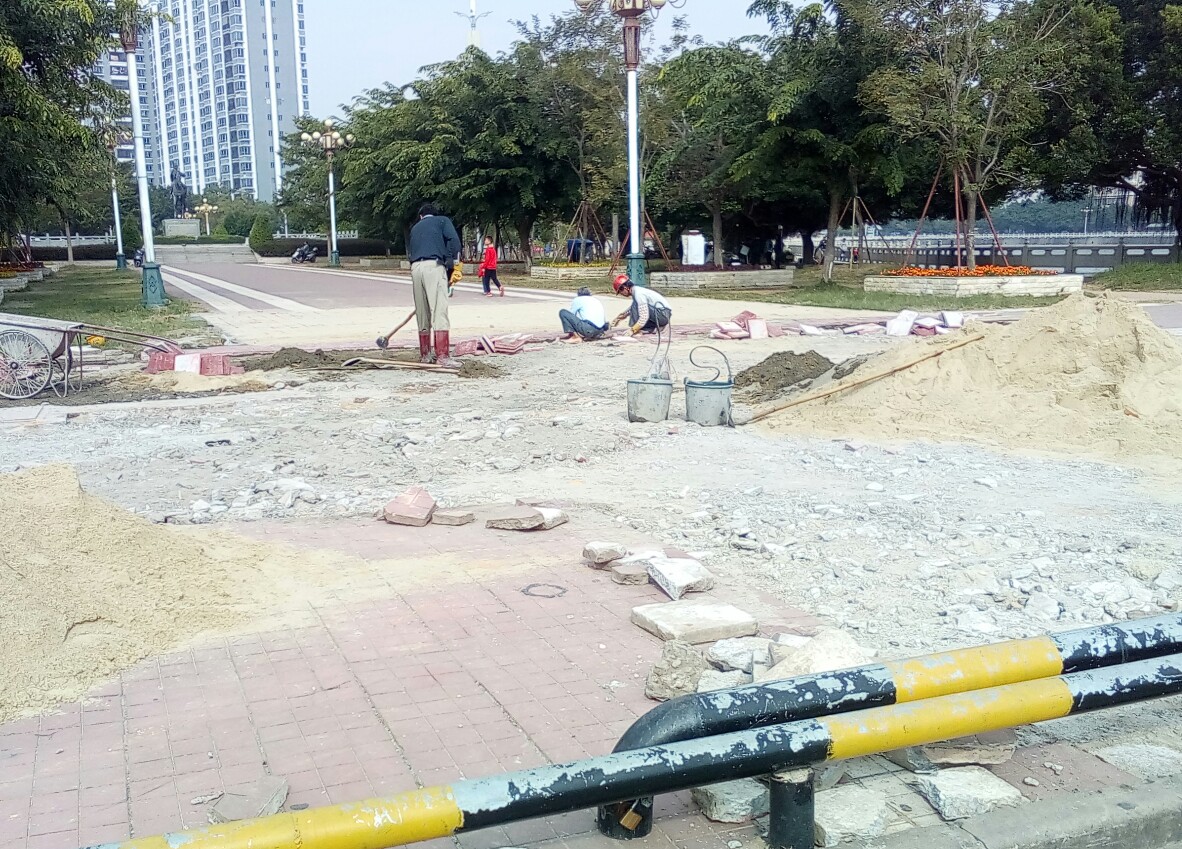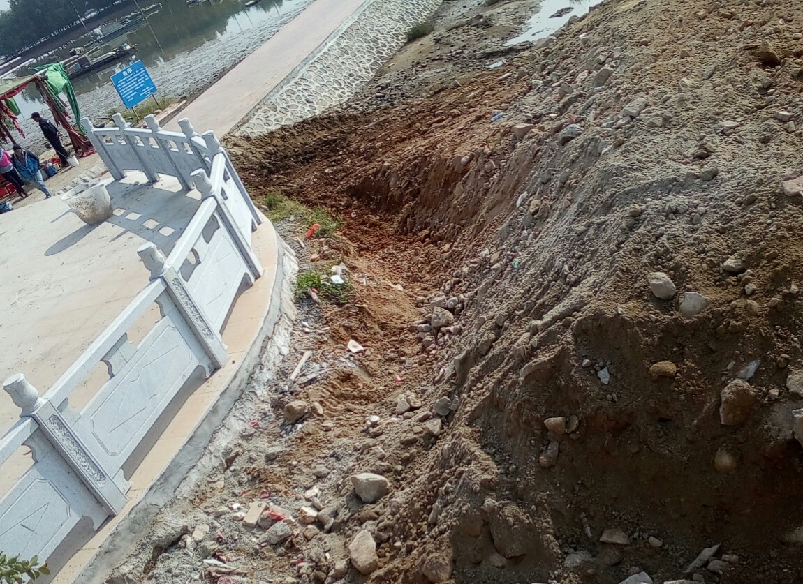 其他 海堤斜坡种植的升级改造基本完成,为何这凹洞不填平?