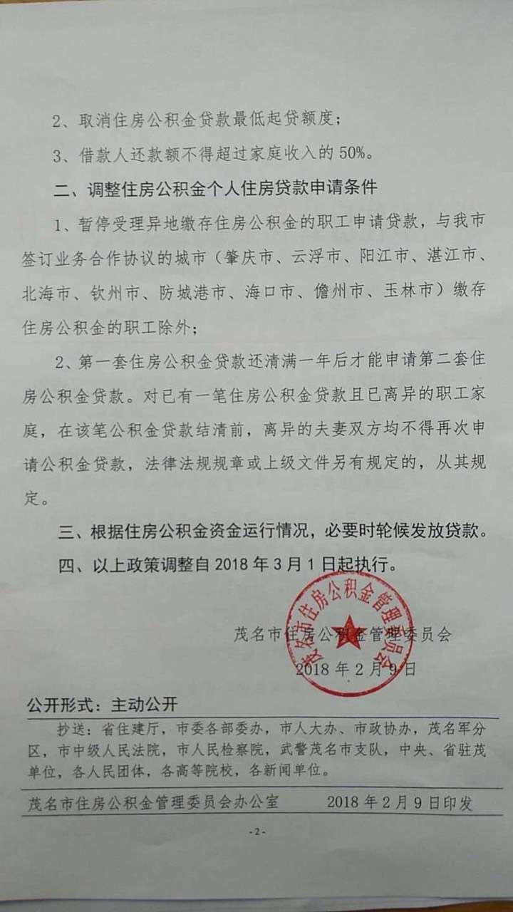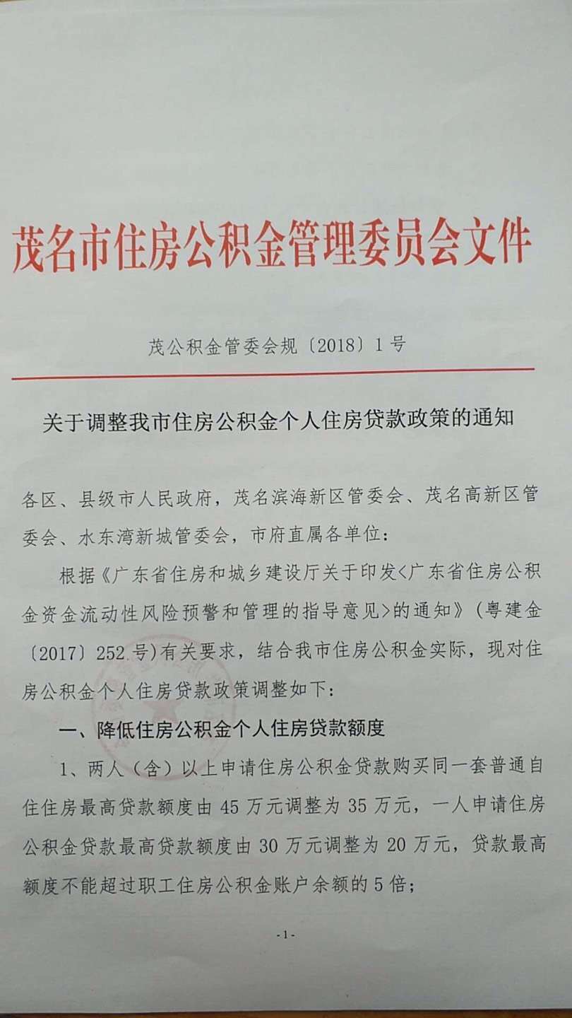 茂名公积金最新政策,夫妻双方最高贷款额度45万调整为35万;个人最高贷款额度30万调整为20万;额度不超过余额5倍;取消最低额度!