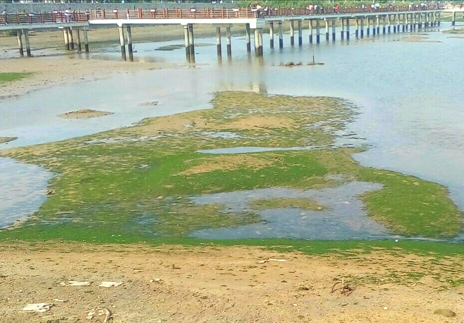 水东海堤科普栈道的滩上绿色的一片~
