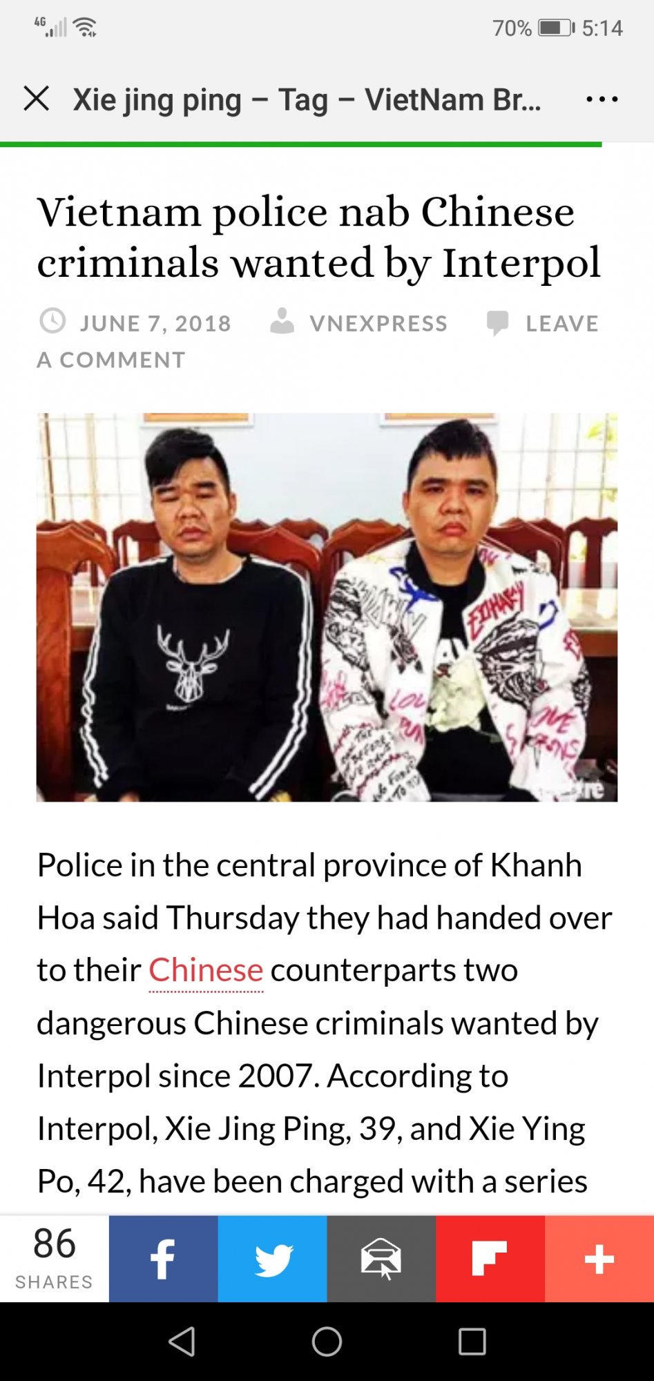 hchcc 荣誉会员 荣誉会员 注册 2004-08-21 消息 7,450 反馈评分 1,833 点数 191 性别 男 2018-06-09 #1,175 越南媒体也报道了 https://www.vietnambreakingnews.com/tag/xie-jing-ping/?from=groupmessage&isappinstalled=0