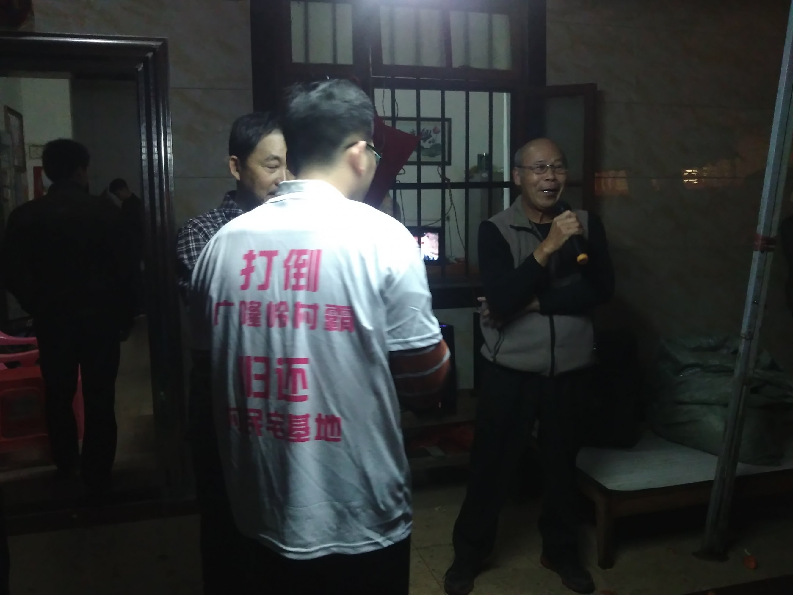 经过多次和村霸恶势力斗争,村民们都表现出冷静睿智,保持了0暴力冲突,坚持非暴力原则抗议不给社会和政府增加麻烦。广隆岭打击村霸表彰大会当晚召开,但天公不作美下着小雨,村民租来了雨棚拉上了电灯,简陋的音响也能发出最震撼的人心声。文明团结是广隆岭人的使命,这一切都会成为后代的模范。台上表扬台下掌声不断,花生米和啤酒把男女老少汇聚成一桌桌,年轻人穿战衣大合照,此情此景即使是台风来了也动摇不了村民打击村霸的决心。