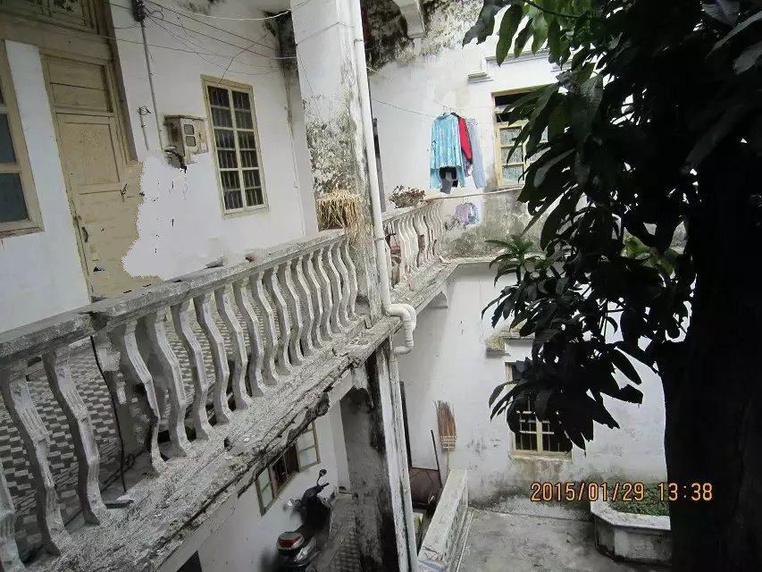 图为杨竹轩故居,里面有一个大天井,楼下楼上的走廊铺砌法国彩色地砖,地砖质地坚硬,几百年都不会踩坏。