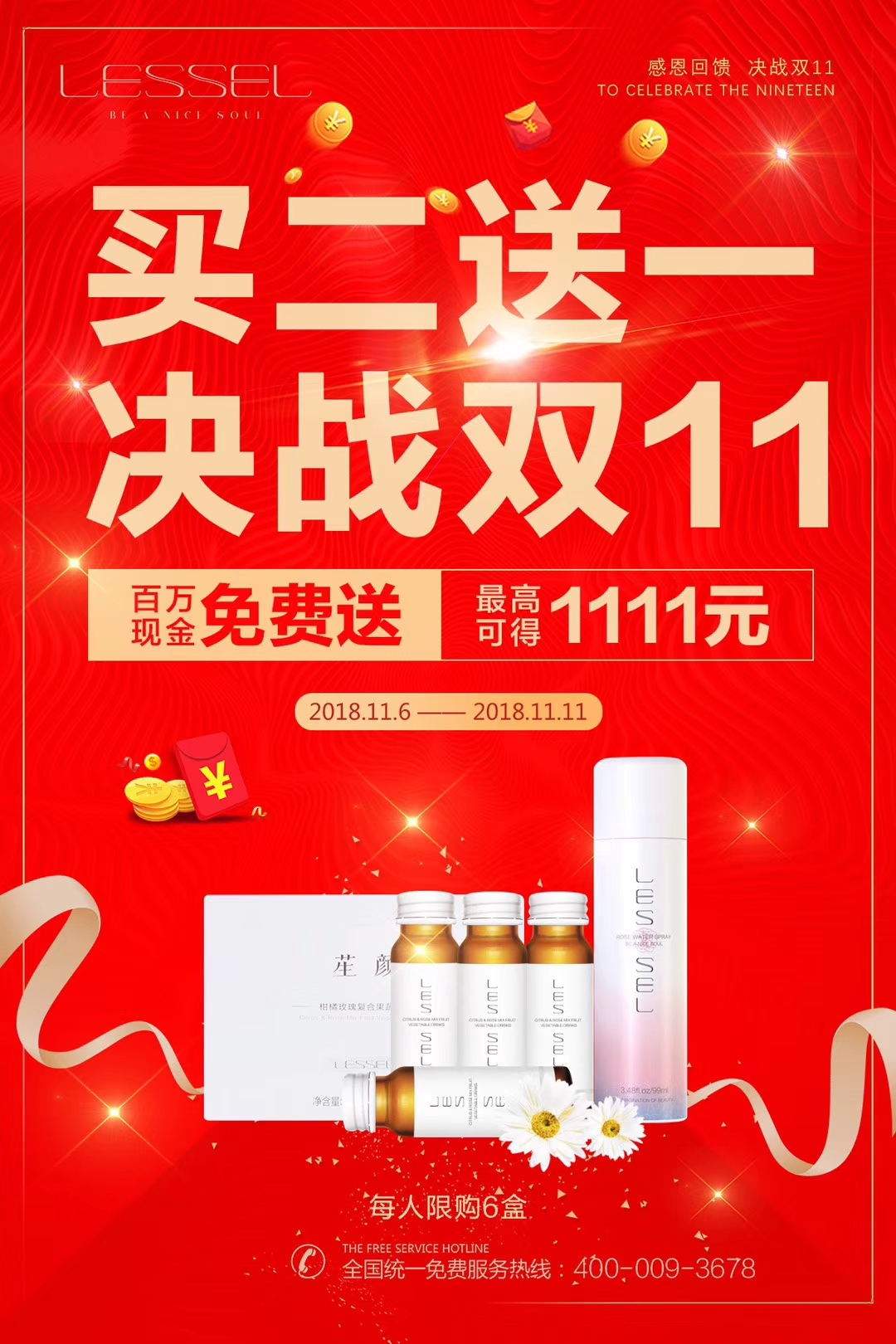 小 小牧云 幼儿园 注册 2018-11-08 消息 1 反馈评分 0 点数 0 2018-11-08 #1 LESSEL 莱斯欧 双十一正式开始,不用等到11号 全场买二送一 酵素、花水喷雾 全国统一免费服务热线:400-009-3678 附件 3.jpg 801.3 KB · 查看: 301