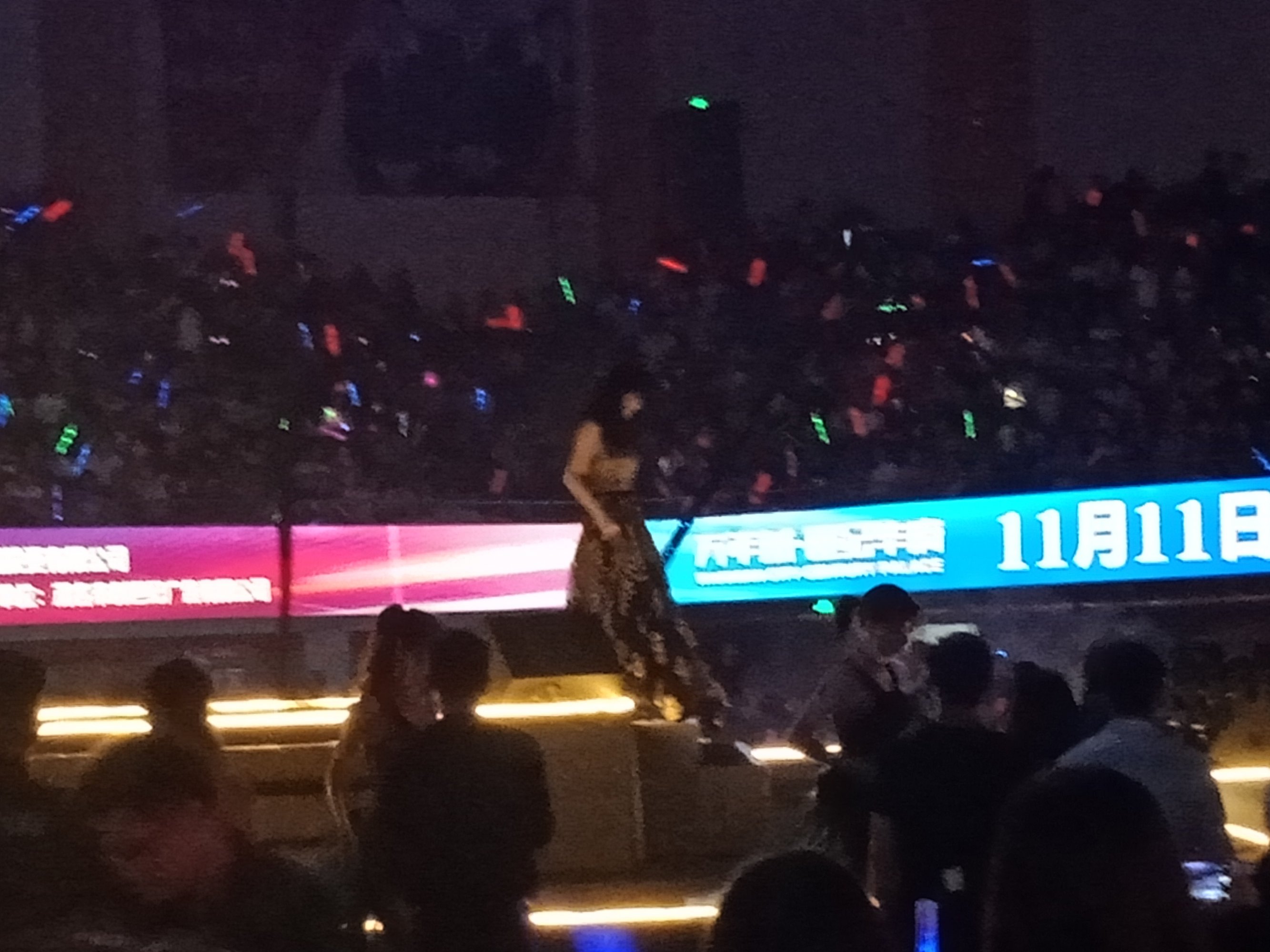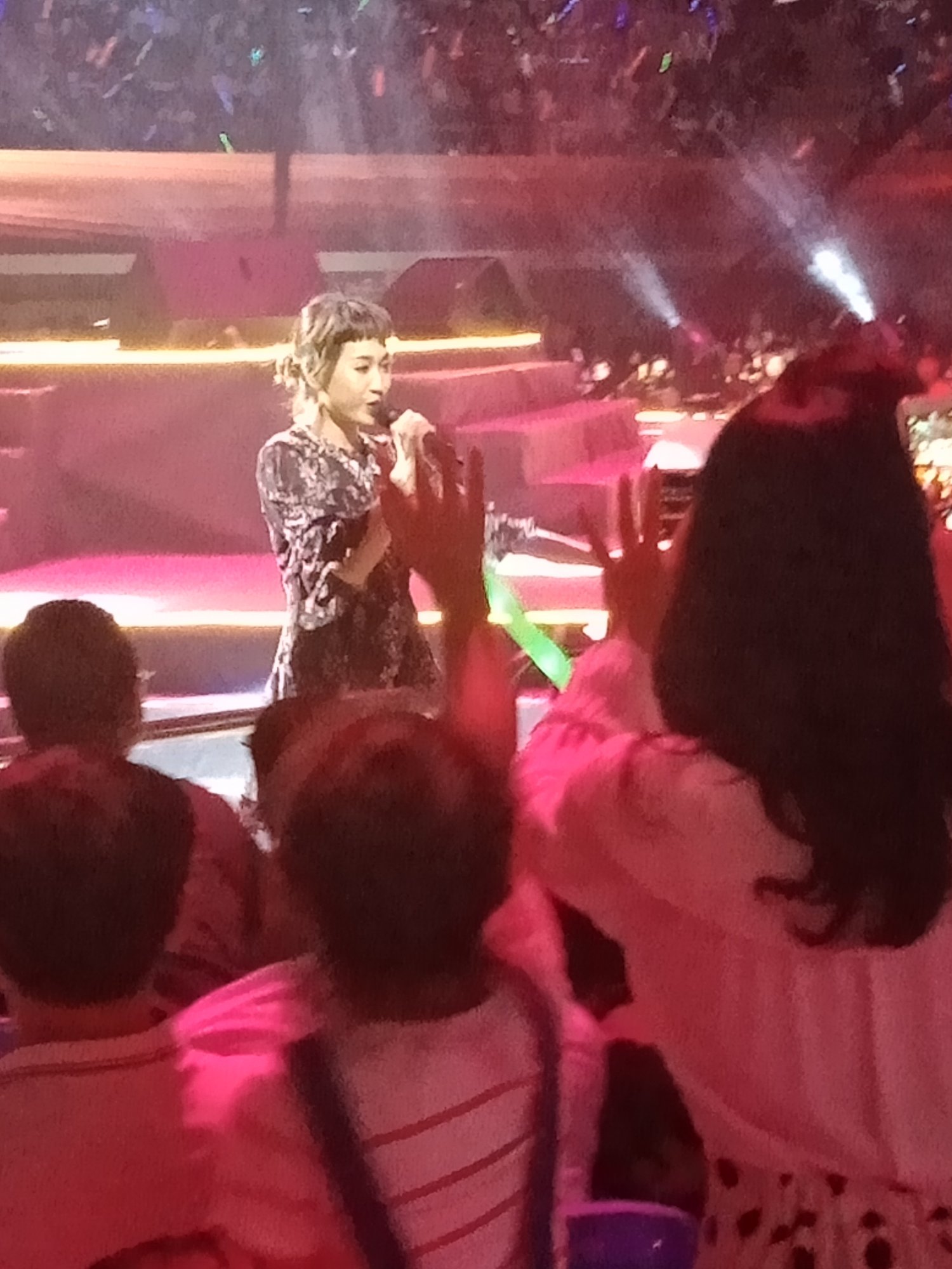 再由邓颖芝出场~先劲爆歌~这位还行,走下台与群众握手互动~好多安保围住~好多人冲向前面与其握手~近距目绪~