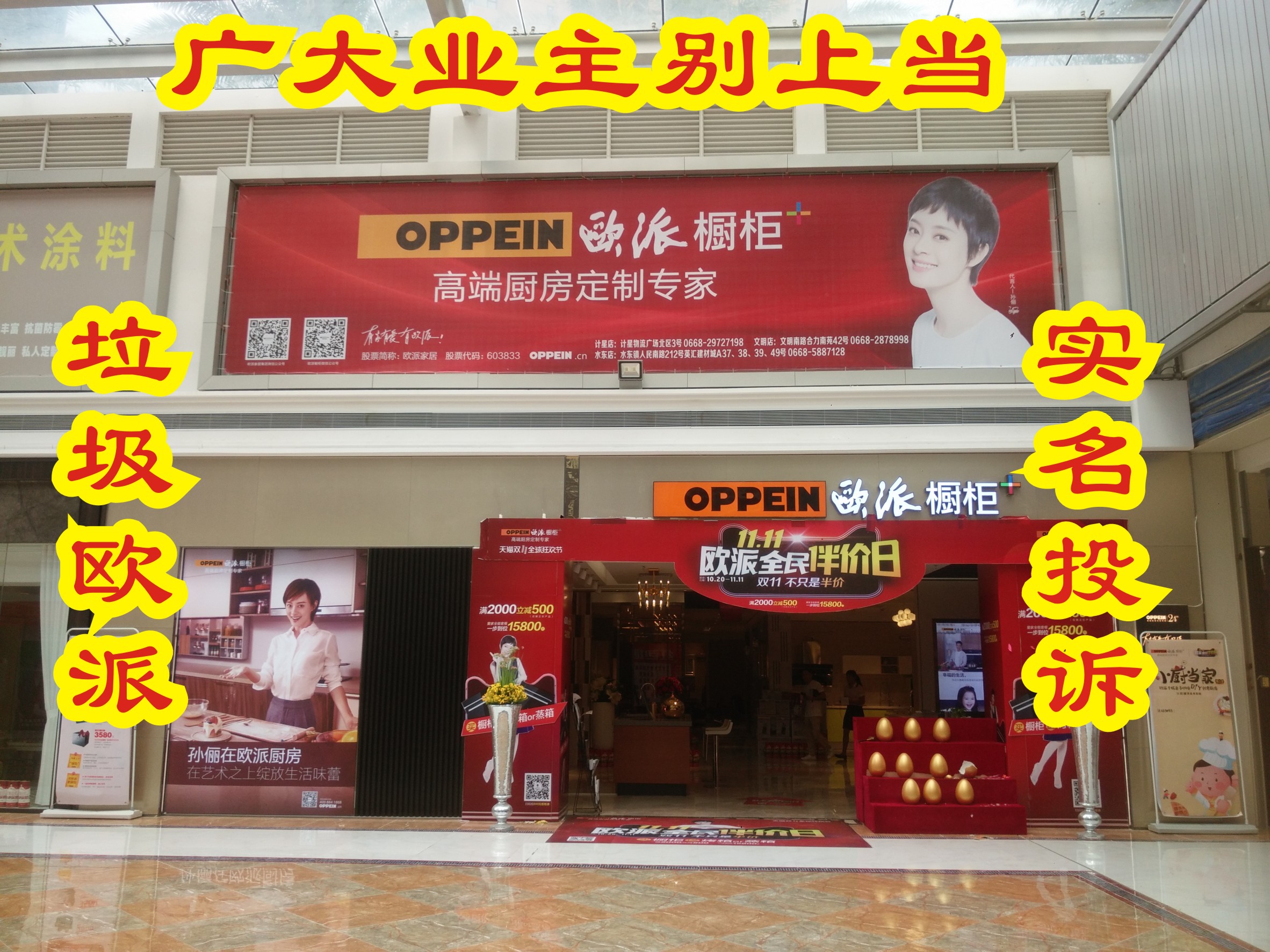 公开欺骗奸商:电白欧派橱柜专卖店的地址:电白金裕世家建材市场一楼,别玩弄消费了,滚出去吧!