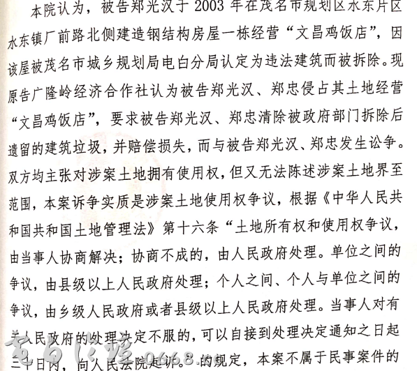广隆岭村22亩集体宅基地被村霸占用十几年,维权十几年,去年全村热情高涨正式扫黑除恶打村霸到现在一年多,上个月广隆岭村全体村民向电白区人民法院起诉村霸侵占村民集体宅基地,却被电白区人民法院的黄敏法官驳回上诉,判定认为土地存在使用权争议,水东镇政府,电白区人民政府,包括相关有关部门各个局,还有电白区开发公司征地合同证明该土地属于广隆岭村集体宅基地,依然被枉判,把事情推回人民政府。现在政府搞双创,要下文件让广隆岭村清理强拆违建的20多亩建筑垃圾,这里是不是有什么阴谋?还是说政府认定是我们村的土地,而法院不认定是我们村土地?是黄敏法官打政府的脸,还是政府打黄敏法官的脸?还是想利用我们去帮双创干点活?请政府解释一下,村里之前开个会议决定去清除,到时候村民跟村霸双方发生什么冲突,或人员伤亡政府要负责。