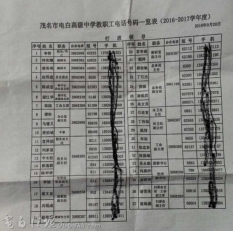 这个学校的领导班子成员和各部门正主任居然没有一个人获得优秀?只有三个副主任获得优秀?太假了吧???在我大电白区居然还有这样学校?楼主发的贴我表示怀疑……
