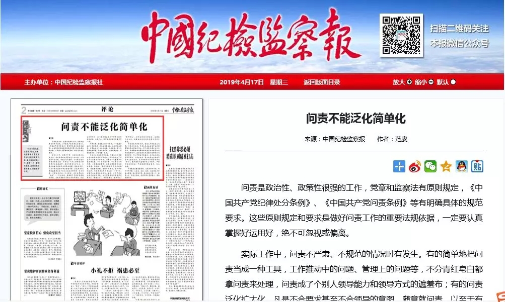 新闻 中纪委机关报:不能什么问题都问责处理;不能谁说问责就问责,想怎么问责就怎么问责。