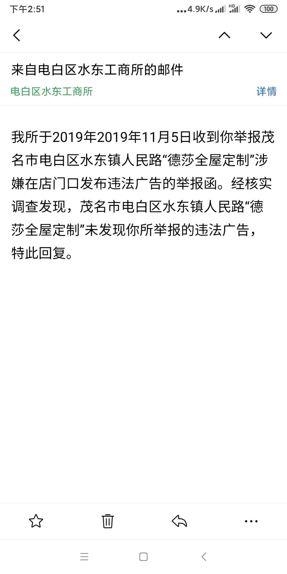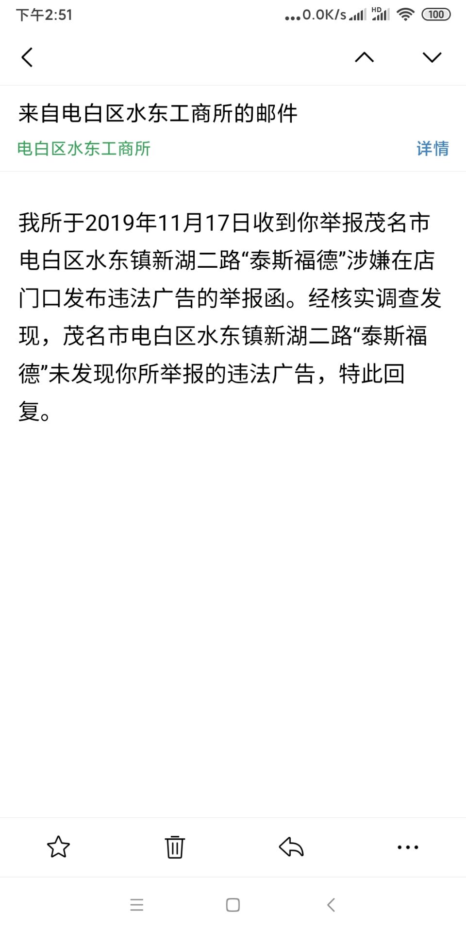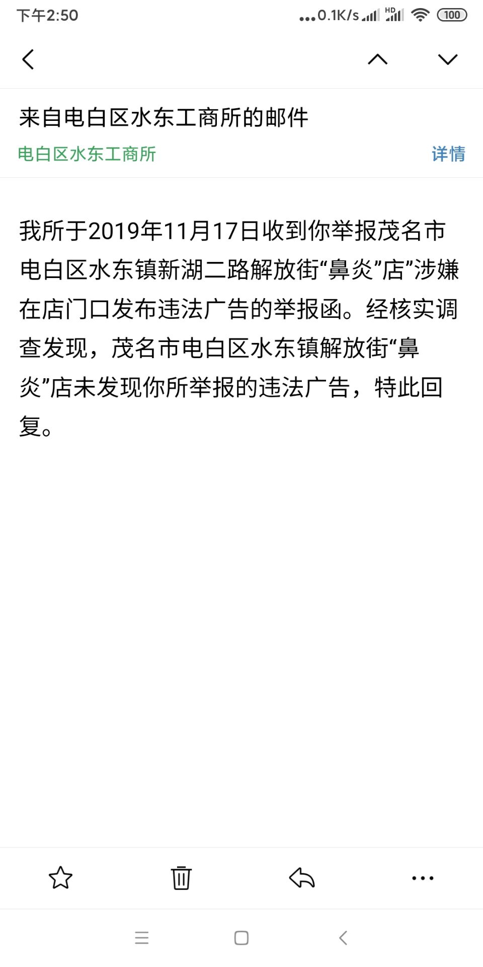 最令我懊恼的还是电海(原海滨)市场监督管理所的回复,有茂名市市场监督管理局的影子。水东市场监督管理所的建议监委看看。