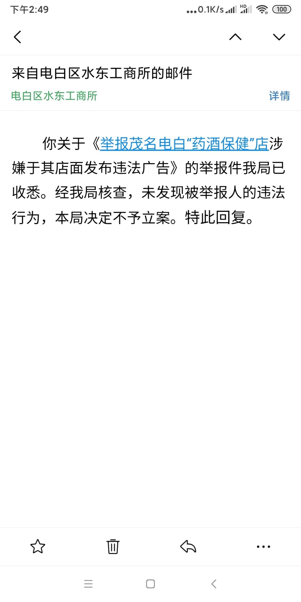 投诉 若再被“冷”攻击,本人必将茂名(工商)市场监督管理系统回复的太多“未发现”在论坛曝光