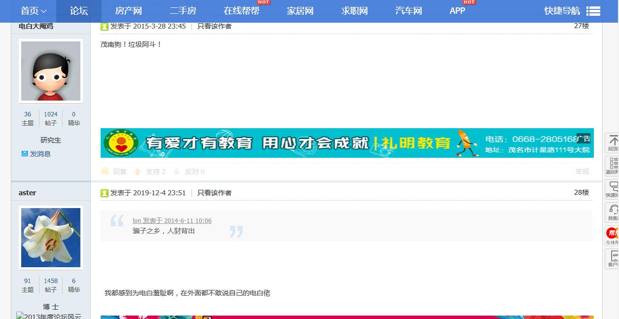 本号在电白论坛混了13个年头,发帖8000多,也算是阅友无数了。