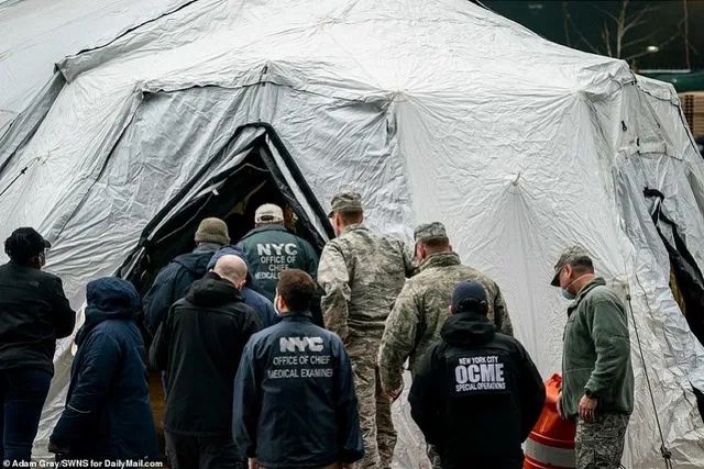 纽约市首席验尸官办公室发言人阿贾·沃西-戴维斯(Aja Worthy-Davis)表示,工人们已经在曼哈顿下城的停尸房旁搭起了一个大帐篷,并安装了拖车。