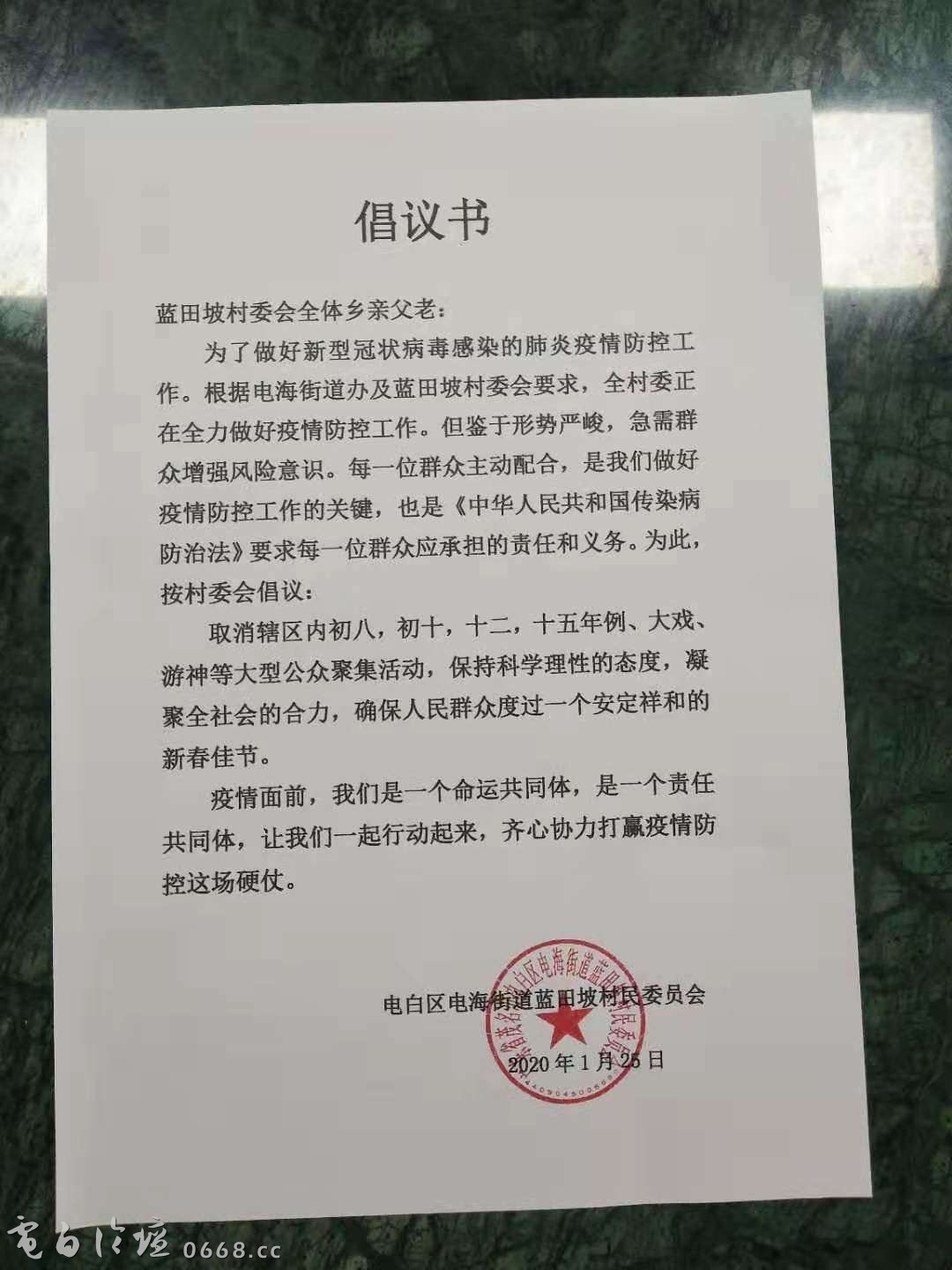 区府已经倡议停止聚集活动,村委应该宣传并禁止一切聚集活动,为了大家的身体健康,有些大庙拜神的也应该禁止,希望村委明令禁止,容纳超过5个人的庙都应该禁止,不然去拜吧会有感染的威胁,不去吧面子上又过不去,直接禁止就好了。还有年例也一样需要村委去明令禁止。这个肺炎来势凶猛,大家一定不要轻视呀。