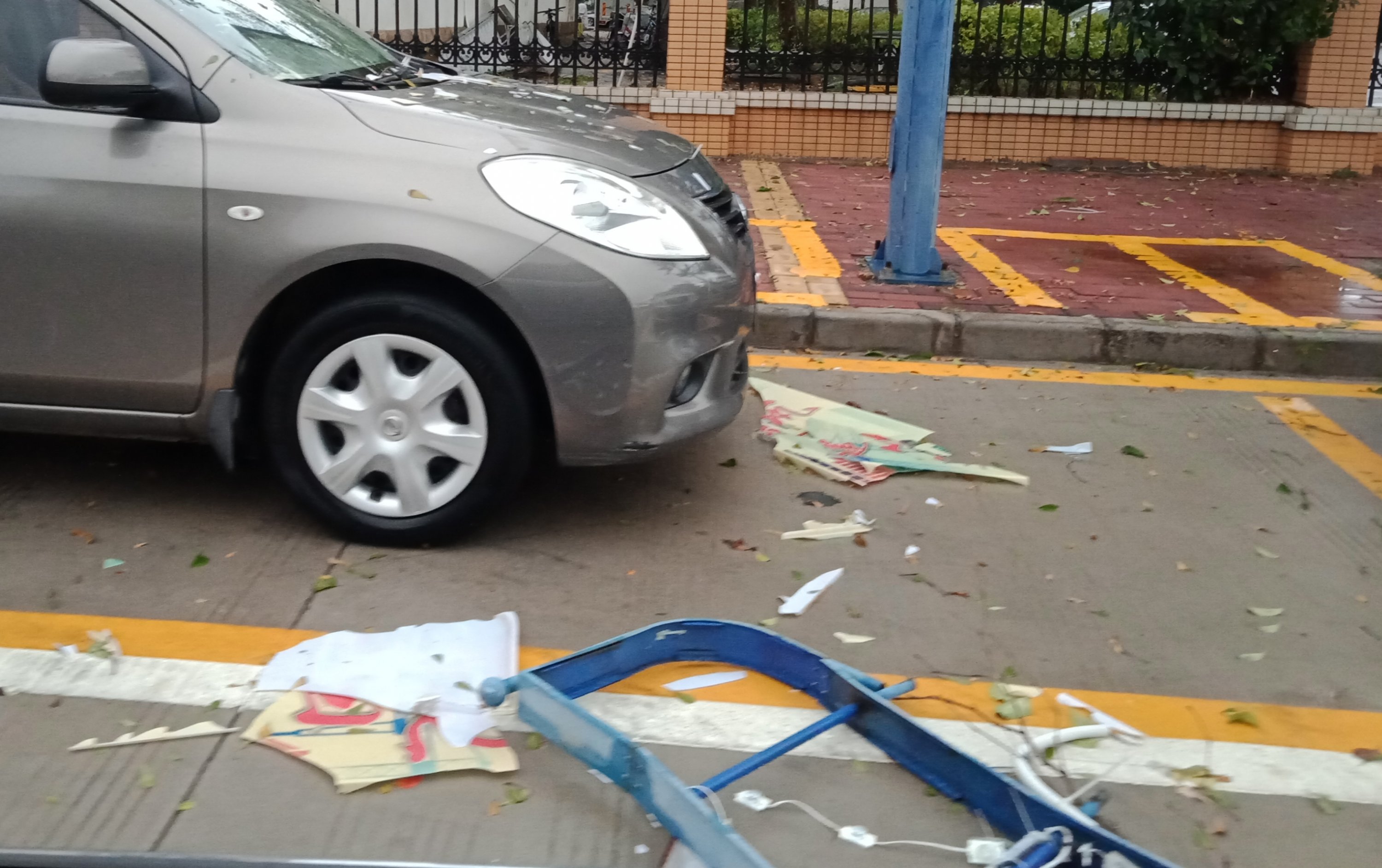你那辆车有没给冰雹砸到不知,如果给狂风吹倒吹离的树木,广告牌箱等砸到就不好说了,