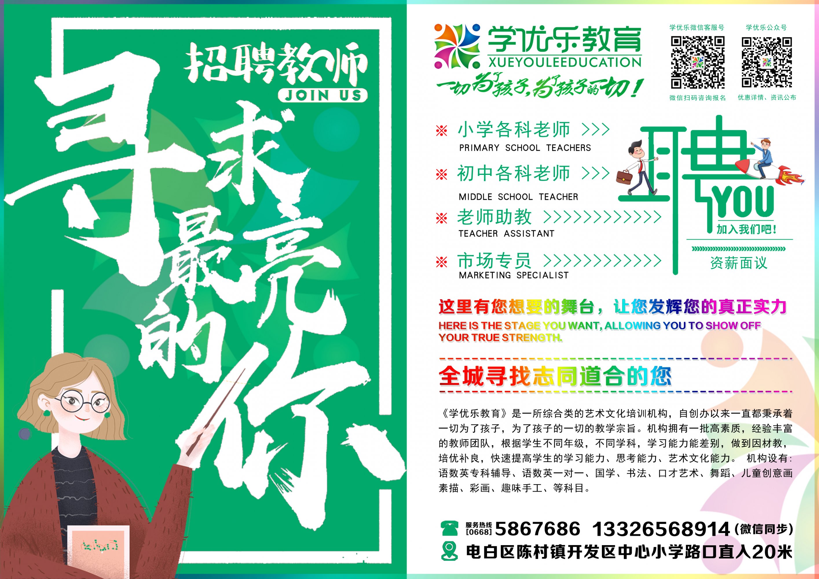 面试地址:电白区陈村镇中心小学路口直入20米,学优乐教育,