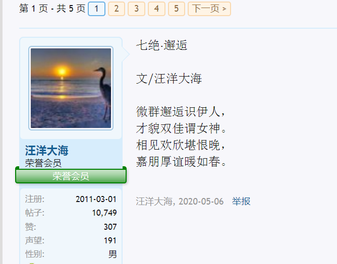 汪洋大海通过微信骗得才貌双全后作诗在本论坛淫意摆显,装逼。