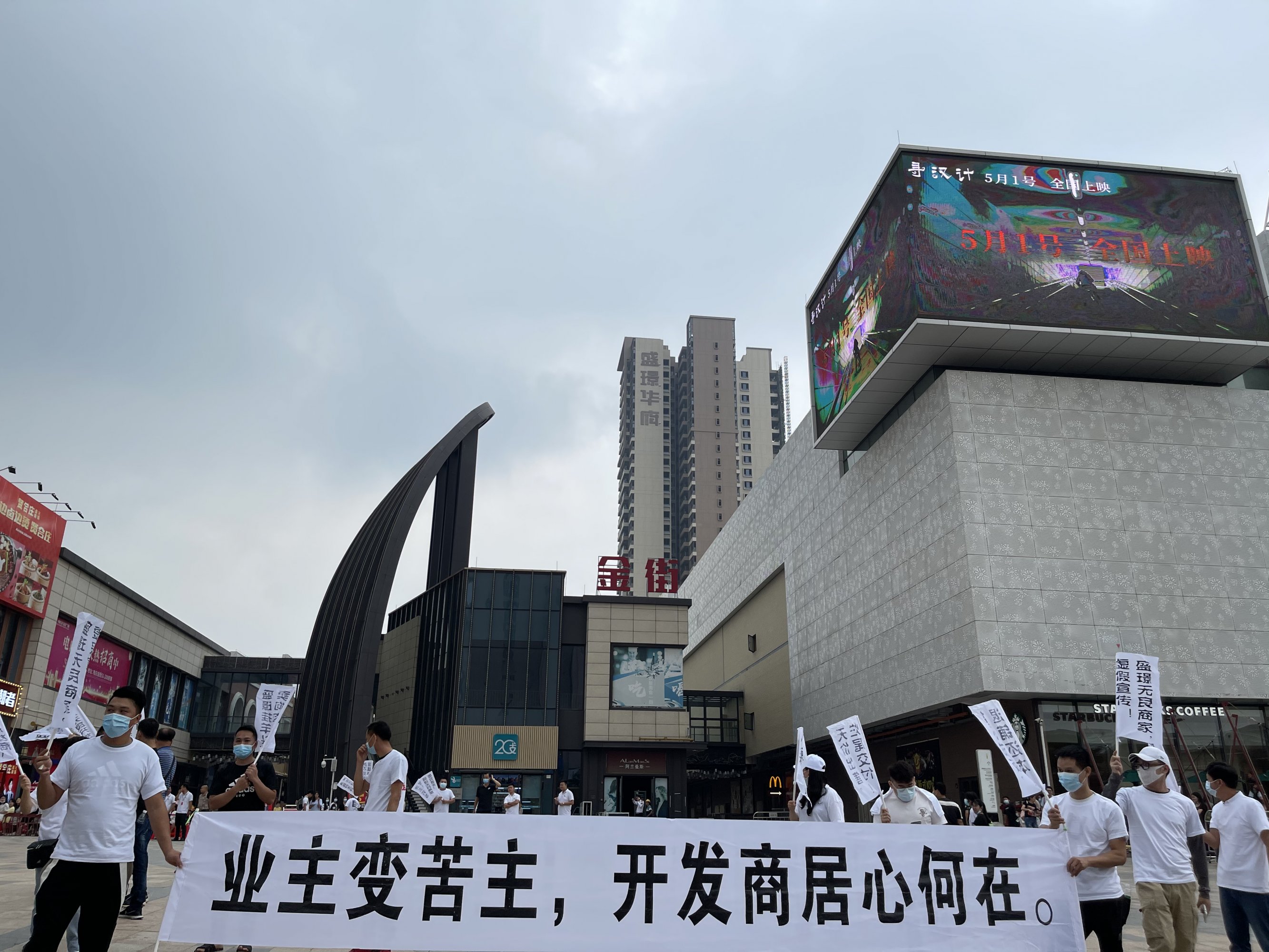 拥大件事,不见有人出来讲得?今日应该也很多人看到啊,当时也有不少人拍视频拍图片的,很快来了几部车的人穿着制度驱赶散了那些业主,不知10几分钟后,二楼的楼顶突然站了10几位身穿白色上衣后面印着:无良商家,退铺还款。这几个字眼的人,有男有女...估计也是金街的业主咯,唉也是可怜,诉求无门也不用跳楼的啊