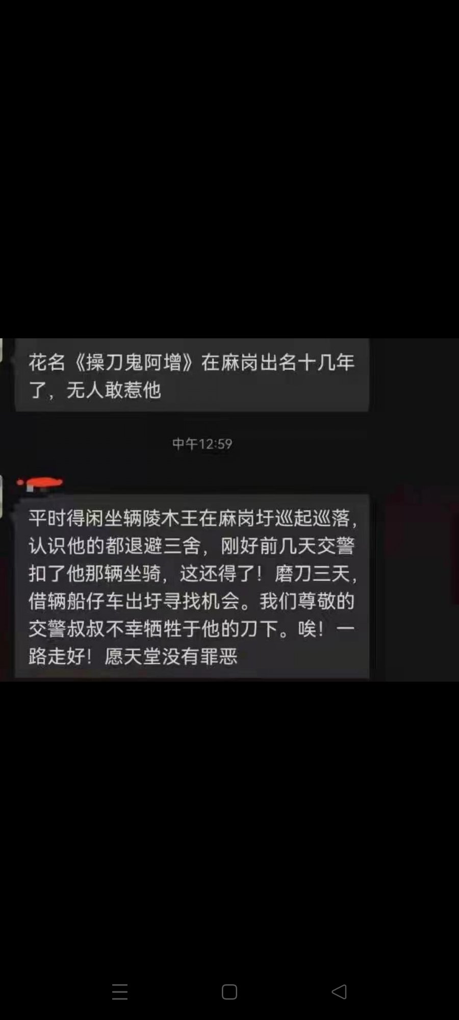 水东湾小城 说: 电白官方执法向来野蛮,不得民心,所以交警遇袭,没有人上前帮忙,大家冷眼对待。话说回来,对于此事,其还是无辜的,扣押查处无牌车辆,是法律赋予交警的权力,因扣押车辆就杀人,肯定是要偿命。民众怨的是法律只为有权有钱人服务,不能公平对待!比如平时的执法者仗着自己是代表法律的,就可以违规甚至是违法行法,而这只会招致民怨! 点击展开... :p