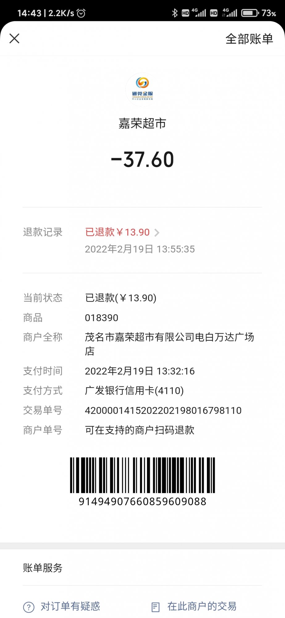 于是跟工作人员反应了情况想着就算了,然后她说叫我换一只我说太恶心吃不下这个了,她说帮我回馈去收银台退款一只鸡的钱。