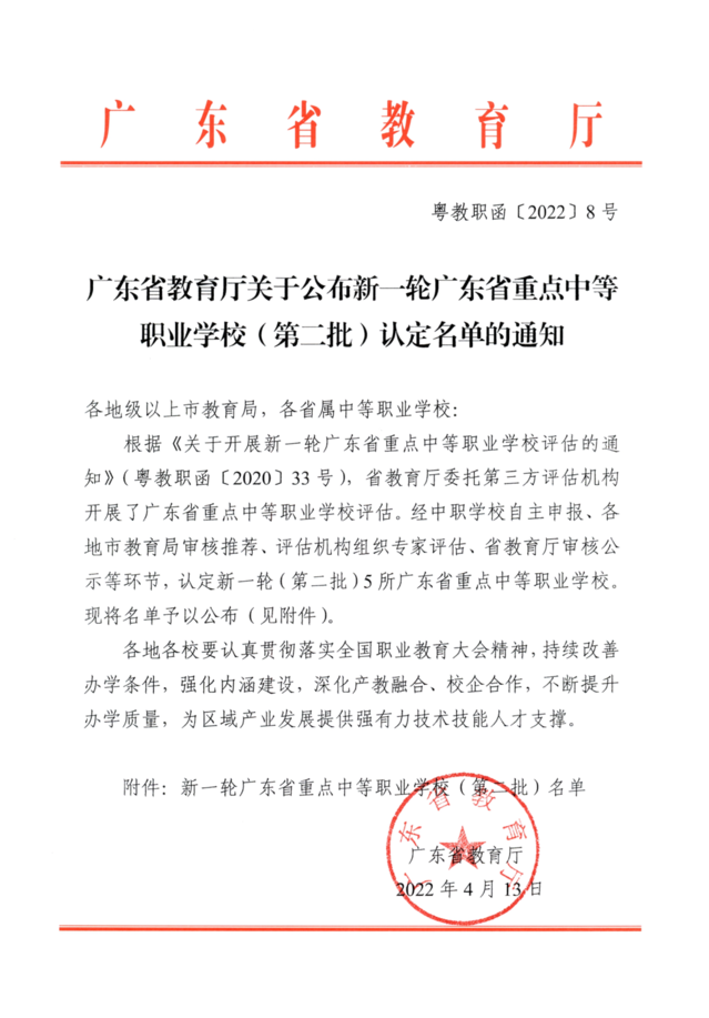 特大喜讯!广东省教育厅认定高州市信息职业技术学校为“广东省重点中等职业学校”!